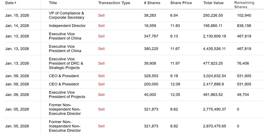 As the mainstream narrative surrounding copper accelerates, a quiet signal is emerging. Across the full spectrum of copper producers, from majors to developers, insider activity has skewed meaningfully toward selling in recent months. While it is true Executives sell shares for a variety of reasons, the context and breadth are significant.