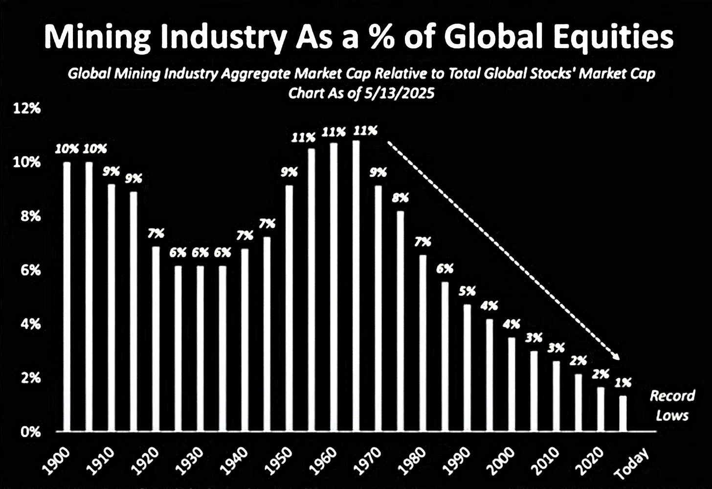Markets are a flow chart of capital. Concentration in one segment necessarily creates deficits elsewhere. Commodities broadly, and critical materials specifically, have borne the consequences of this imbalance. Underinvestment across mining and refining has been profound . Capital has systematically migrated away from the industries responsible for physical supply as the global economy’s material intensity has quietly increased.